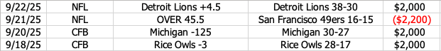 Last week alone, I went 3-1 in football picks—stacking up +$3,800 in profit across both NFL and CFB. That’s not luck, that’s precision.
